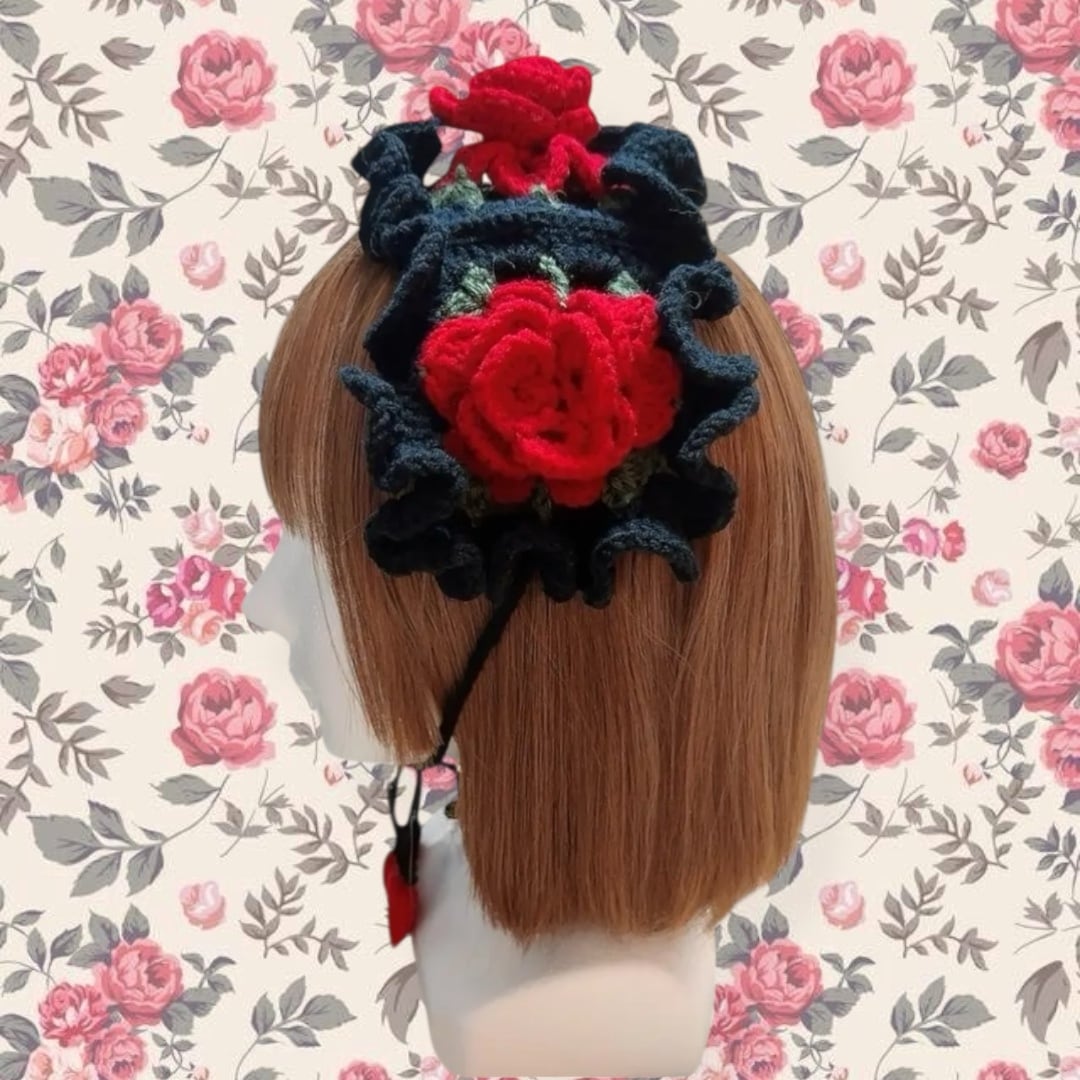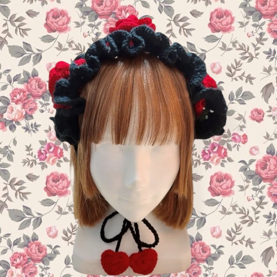 大きな薔薇のモチーフが華やかに咲くヘッドドレス。