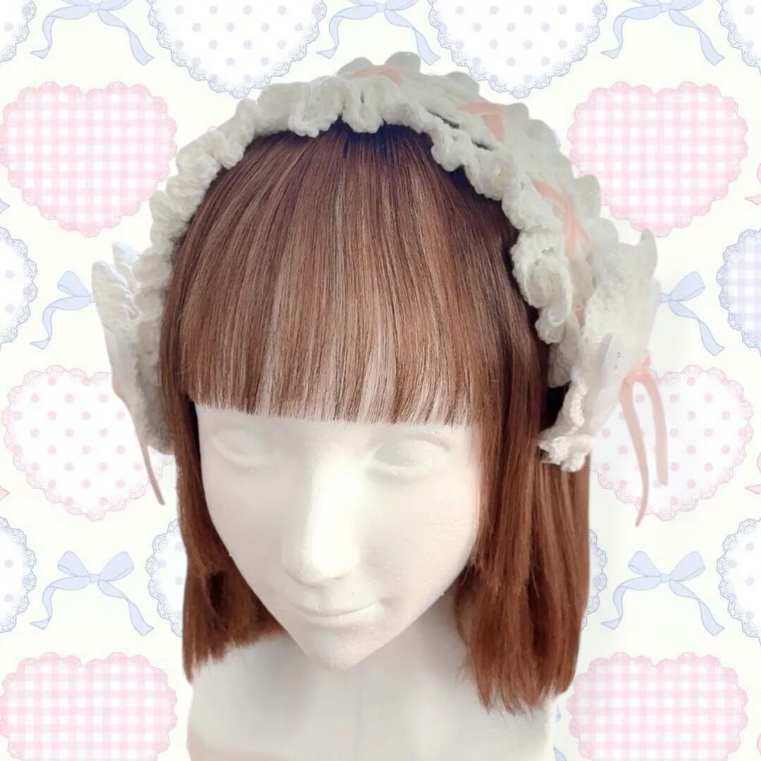 コットン毛糸で丁寧に編み上げた、特別なヘッドドレス。
